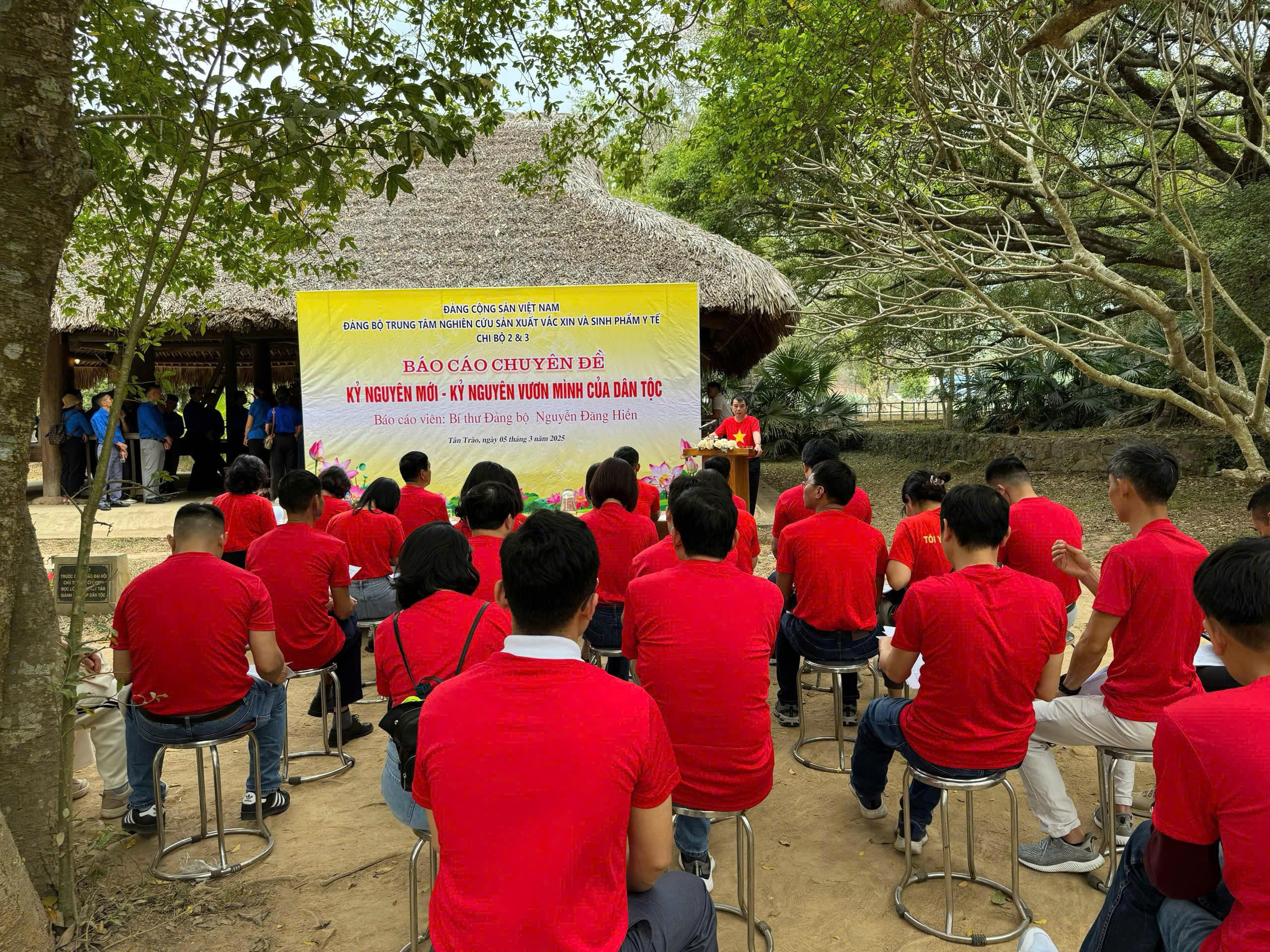 Hướng tới Kỷ niệm 80 năm Cách mạng Tháng Tám thành công (19/8/1945 -19/8/2025) và Quốc khánh nước Cộng hòa xã hội chủ nghĩa Việt Nam (2/9/1945 – 2/9/2025). Được sự nhất trí của Đảng bộ, ngày 05/03/2025 Chi bộ 2 và chi bộ 3, thuộc Đảng bộ Trung tâm nghiên cứu sản xuất vắc xin và sinh phẩm Y tế, tổ chức chuyến hành trình về nguồn tại khu di tích lịch sử Tân Trào, tỉnh Tuyên Quang.