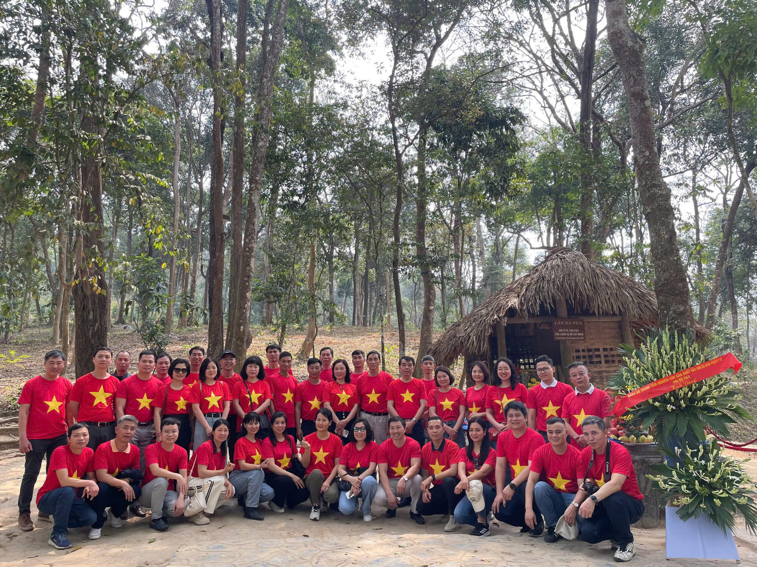 Sau khi học tập chuyên đề tại Đình Tân Trào, Đoàn di chuyển đến Lán Nà Nưa – nơi Bác Hồ ở và làm việc từ cuối tháng 5 đến ngày 22/8/1945 để chuẩn bị và lãnh đạo Tổng khởi nghĩa. Trong không gian trầm mặc của khu rừng ATK, Đoàn thành kính dâng hương tưởng niệm, lắng nghe câu chuyện về nếp sống giản dị của Chủ tịch Hồ Chí Minh trong những ngày tiền khởi nghĩa. Tại đây, Người từng động viên đồng chí, chiến sĩ phải chớp thời cơ giành độc lập khi thời cơ đến – tinh thần “dù hy sinh tới đâu, dù phải đốt cháy cả dãy Trường Sơn cũng phải kiên quyết giành cho được độc lập” tiếp thêm ý chí cho mỗi đảng viên hôm nay.