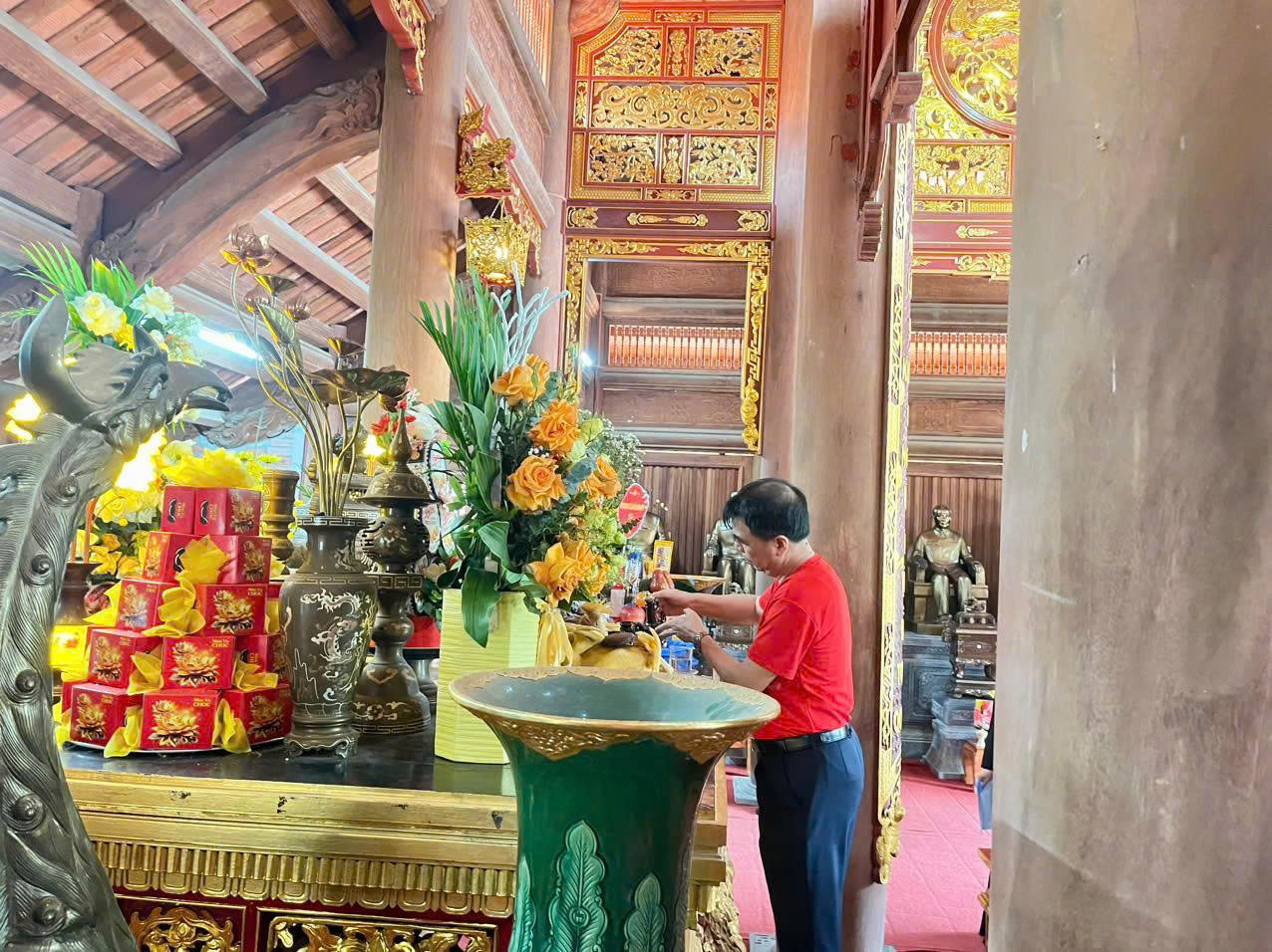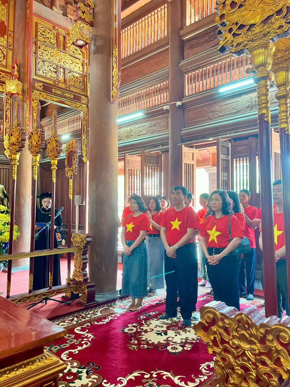 Rời khu tưởng niệm các vị tiền bối cách mạng, Đoàn tiếp tục đến dâng hương Tại Đình Tân Trào đơn sơ mà cổ kính, ngày 16/8/1945 đã diễn ra Quốc dân Đại hội – sự kiện lịch sử quyết định lệnh Tổng khởi nghĩa, thông qua 10 chính sách lớn, quy định quốc kỳ, quốc ca, và bầu Ủy ban Dân tộc Giải phóng Việt Nam do đồng chí Hồ Chí Minh làm Chủ tịch. Trở lại điểm mốc ấy, Chi bộ 2 và 3 thành kính dâng hương, ghi nhớ trách nhiệm của người đảng viên hôm nay trong sự nghiệp xây dựng và phát triển đất nước.