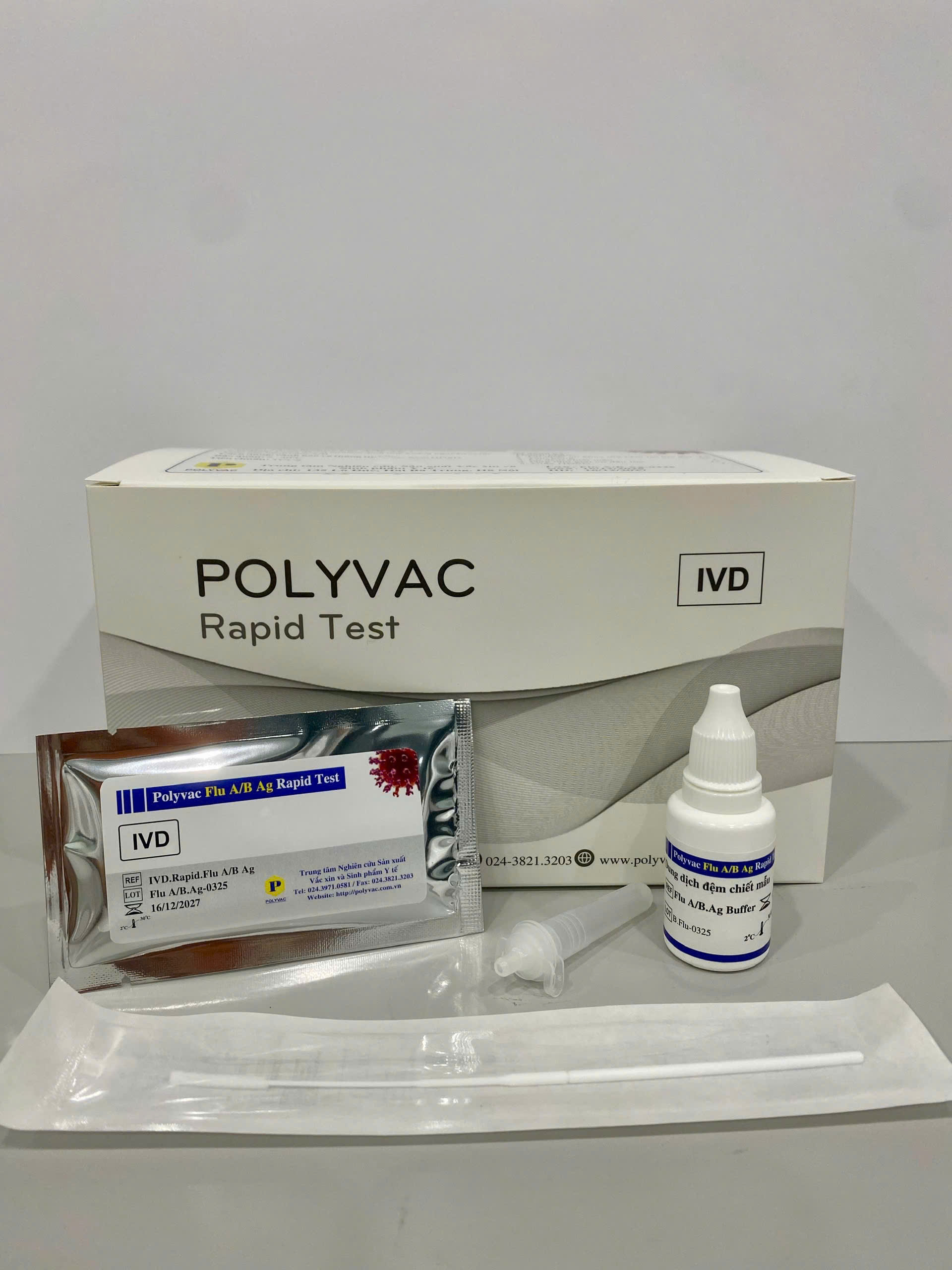 Polyvac Flu A/B Ag Rapid Test là xét nghiệm định tính kháng nguyên vi rút Cúm A/B dựa trên nguyên lý sắc ký miễn dịch để phát hiện kháng nguyên cúm A/B hiện diện trong mẫu dịch tỵ hầu của người. Sản phẩm được sử dụng trong hỗ trợ chẩn đoán phát hiện người nhiễm vi rút Cúm A/B.
